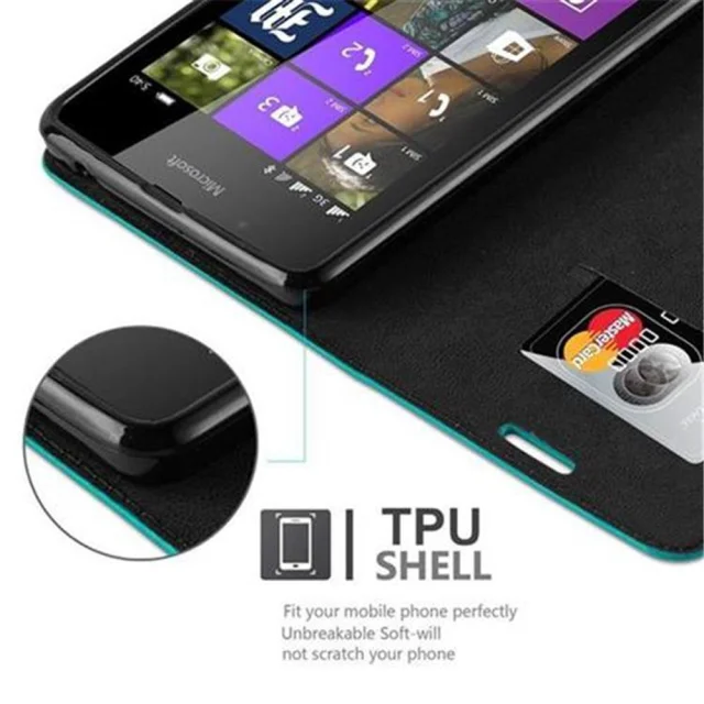 Cadorabo Ohišje, združljivo z Nokia Lumia 540 v bencinsko turkizna - Zaščitni ovitek z magnetnim zapiranjem, stoječo funkcijo in režo za kartice