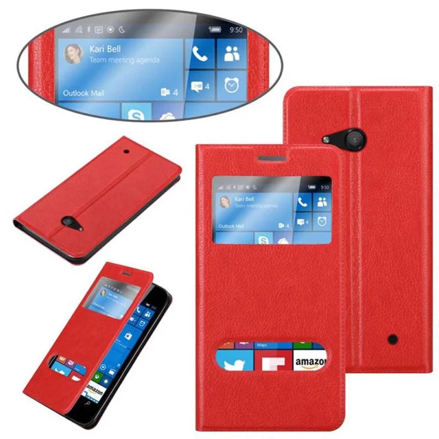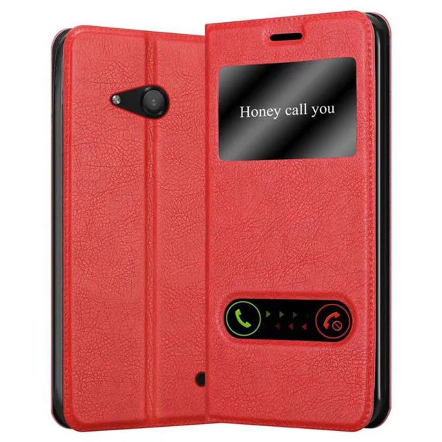 Cadorabo Ohišje, združljivo z Nokia Lumia 550 v žafranovo rdeča - Zaščitni ovitek z magnetnim zapiranjem, stoječo funkcijo in 2 okencema za gledanje