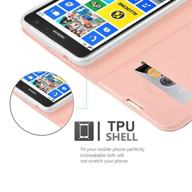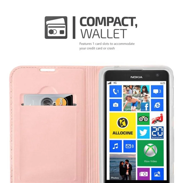 Cadorabo Ohišje, združljivo z Nokia Lumia 625 v klasična rožnata zlata - Zaščitni ovitek z magnetnim zapiranjem, stoječo funkcijo in režo za kartice