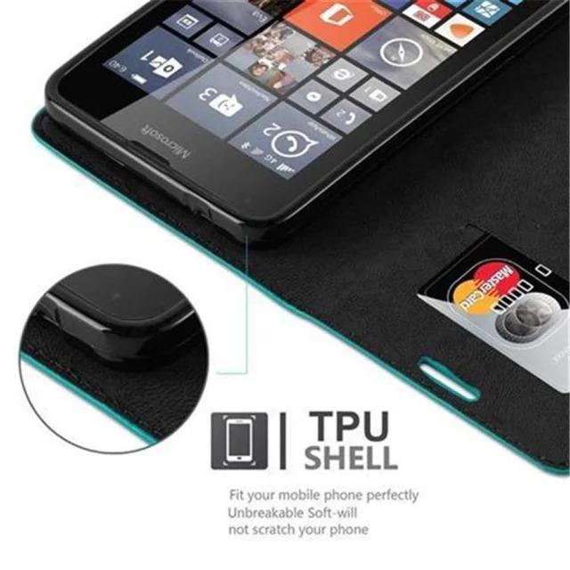 Cadorabo Ohišje, združljivo z Nokia Lumia 640 v bencinsko turkizna - Zaščitni ovitek z magnetnim zapiranjem, stoječo funkcijo in režo za kartice