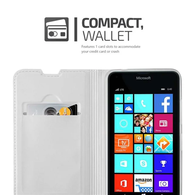 Cadorabo Ohišje, združljivo z Nokia Lumia 640 v klasično srebrno - Zaščitni ovitek z magnetnim zapiranjem, stoječo funkcijo in režo za kartice
