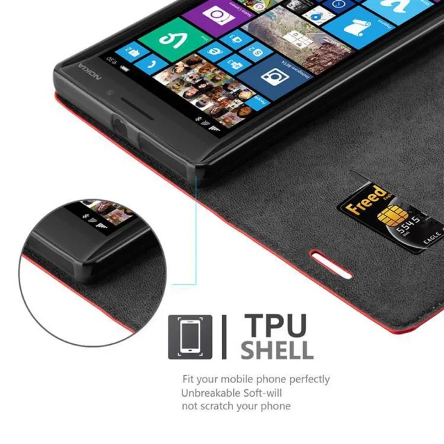 Cadorabo Ohišje, združljivo z Nokia Lumia 929 / 930 v rdeče jabolko - Zaščitni ovitek z magnetnim zapiranjem, stoječo funkcijo in režo za kartice