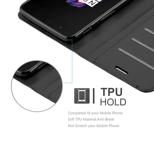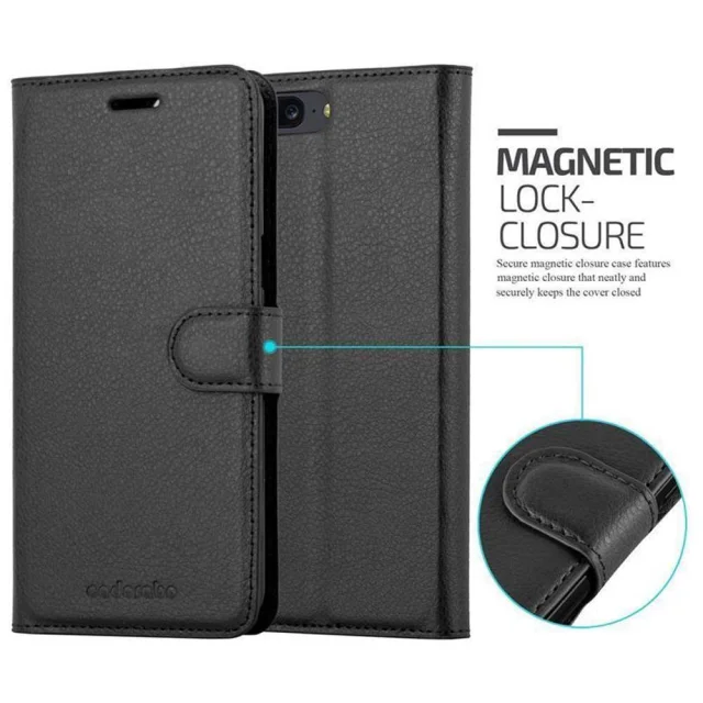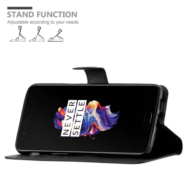 Cadorabo Ohišje, združljivo z OnePlus 5 v oksidna črna - Zaščitni ovitek z magnetnim zapiranjem, stoječo funkcijo in režo za kartice