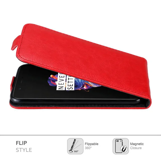 Cadorabo Ohišje, združljivo z OnePlus 5 v rdeče jabolko - Zaščitni ovitek v obliki flipa z magnetnim zapiranjem