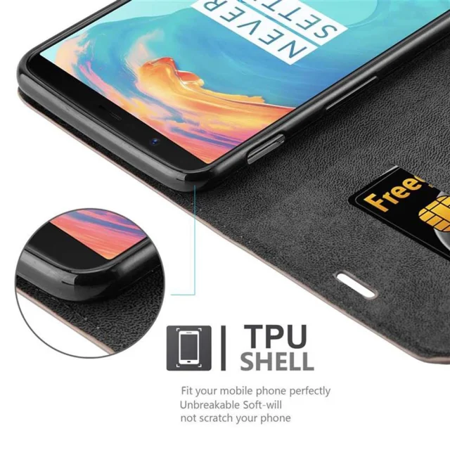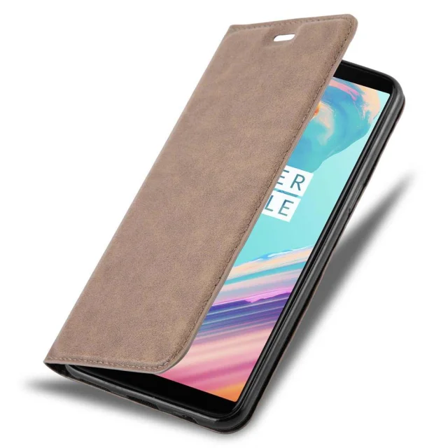Cadorabo Ohišje, združljivo z OnePlus 5T v kavovinsko rdeča - Zaščitni ovitek z magnetnim zapiranjem, stoječo funkcijo in režo za kartice