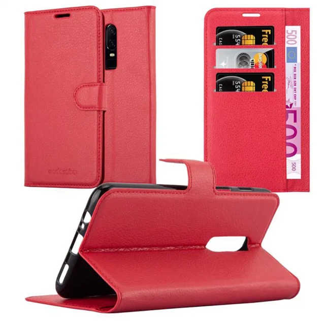 Cadorabo Ohišje, združljivo z OnePlus 6 v rdeče sladkorno jabolko - Zaščitni ovitek z magnetnim zapiranjem, stoječo funkcijo in režo za kartice