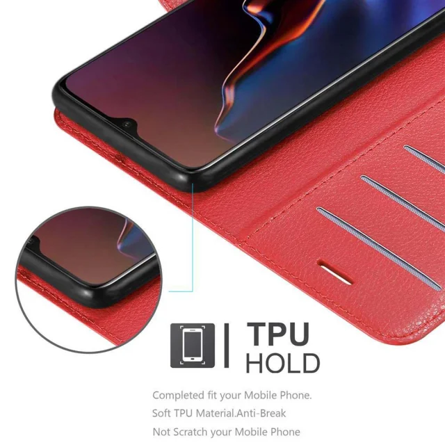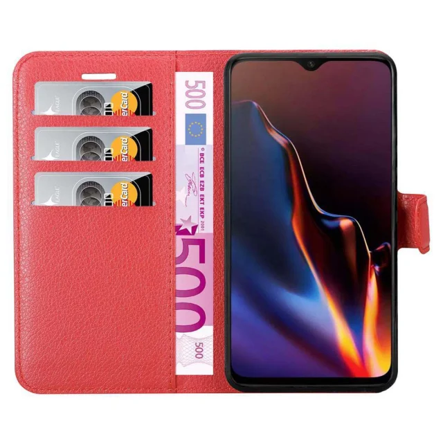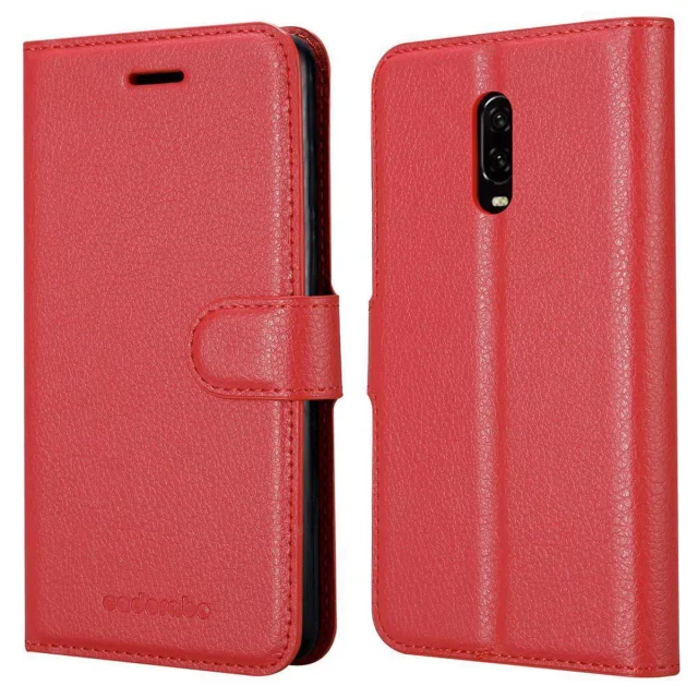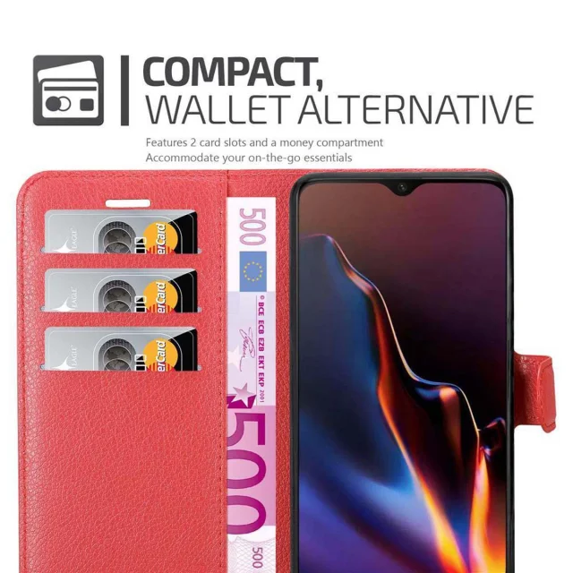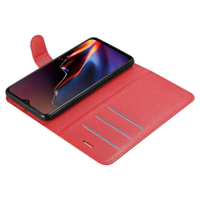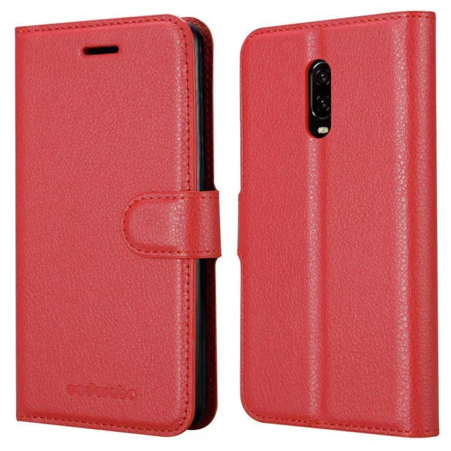 Cadorabo Ohišje, združljivo z OnePlus 7 v rdeče sladkorno jabolko - Zaščitni ovitek z magnetnim zapiranjem, stoječo funkcijo in režo za kartice