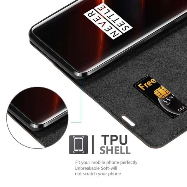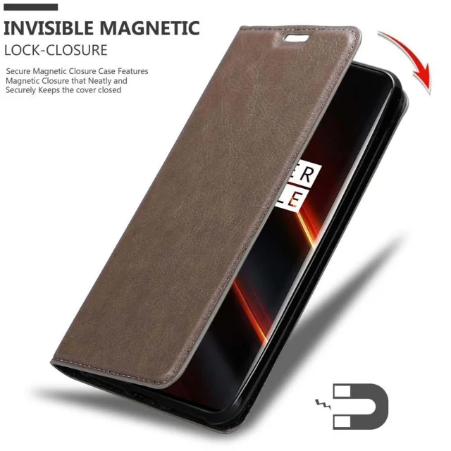 Cadorabo Ohišje, združljivo z OnePlus 7T PRO v kavovinsko rdeča - Zaščitni ovitek z magnetnim zapiranjem, stoječo funkcijo in režo za kartice