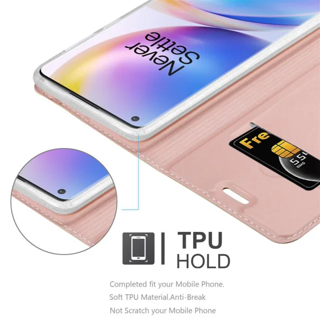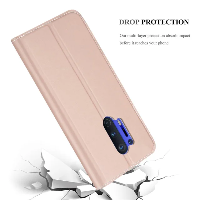 Cadorabo Ohišje, združljivo z OnePlus 8 PRO v klasična rožnata zlata - Zaščitni ovitek z magnetnim zapiranjem, stoječo funkcijo in režo za kartice