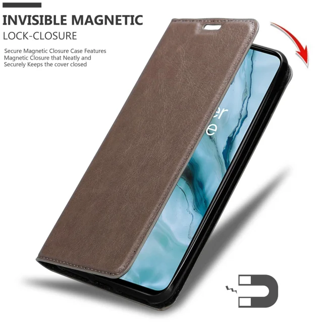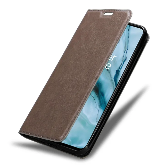 Cadorabo Ohišje, združljivo z OnePlus Nord v kavovinsko rdeča - Zaščitni ovitek z magnetnim zapiranjem, stoječo funkcijo in režo za kartice