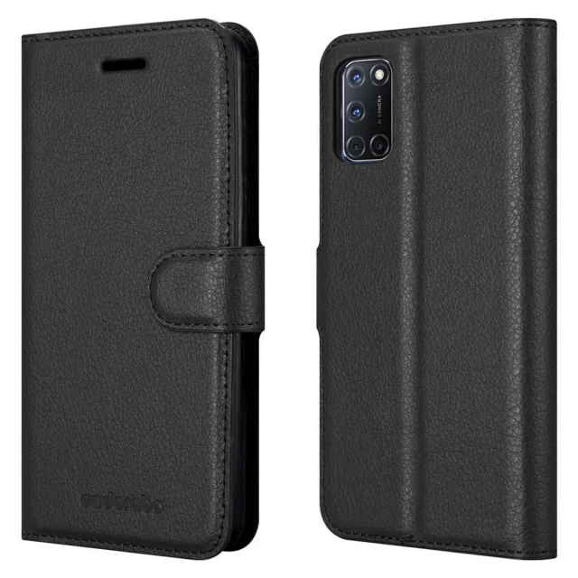Cadorabo Ohišje, združljivo z Oppo A92 v oksidna črna - Zaščitni ovitek z magnetnim zapiranjem, stoječo funkcijo in režo za kartice