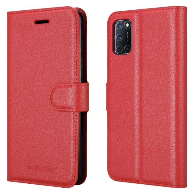 Cadorabo Ohišje, združljivo z Oppo A92 v rdeče sladkorno jabolko - Zaščitni ovitek z magnetnim zapiranjem, stoječo funkcijo in režo za kartice