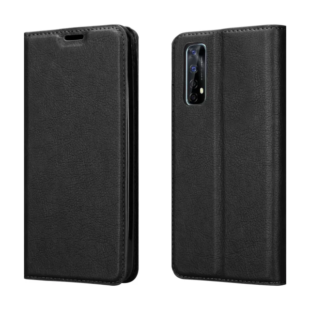 Cadorabo Ohišje, združljivo z Realme 7 4G v nočna črna - Zaščitni ovitek z magnetnim zapiranjem, stoječo funkcijo in režo za kartice