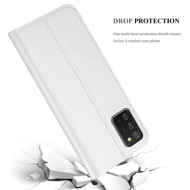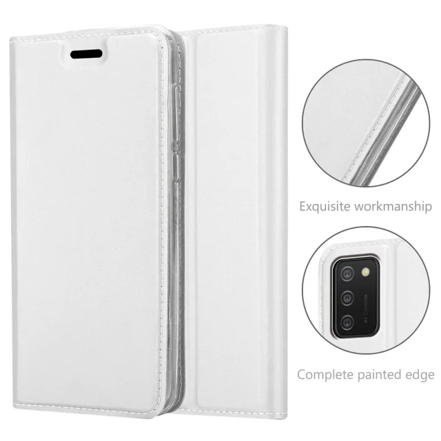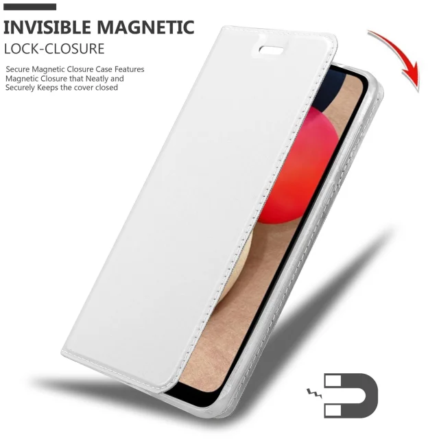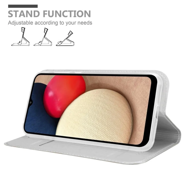 Cadorabo Ohišje, združljivo z Samsung Galaxy A02s v klasično srebrno - Zaščitni ovitek z magnetnim zapiranjem, stoječo funkcijo in režo za kartice