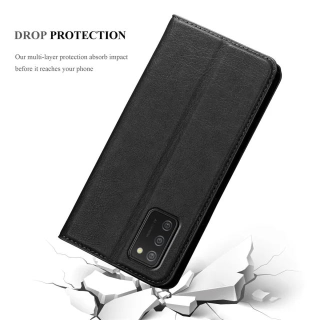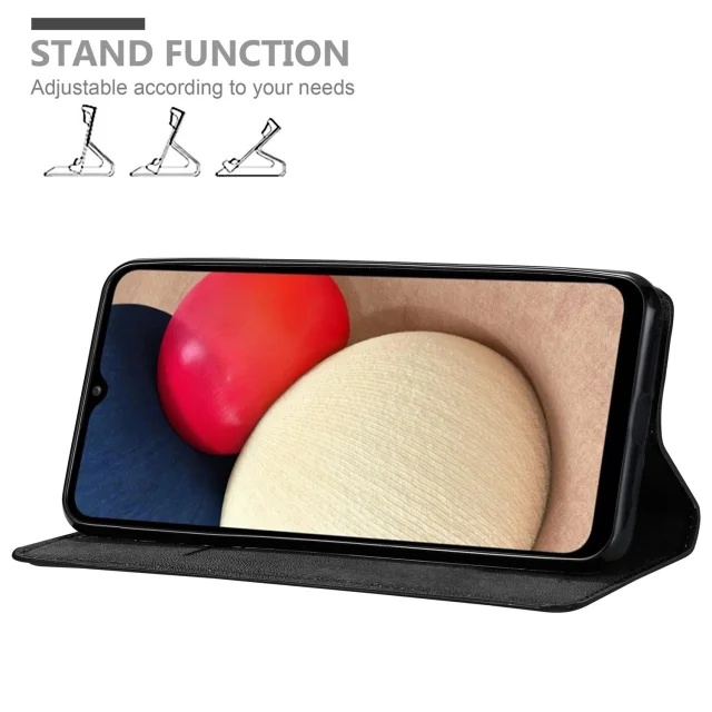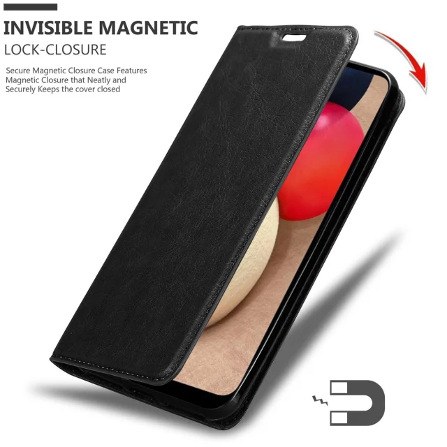 Cadorabo Ohišje, združljivo z Samsung Galaxy A02s v nočna črna - Zaščitni ovitek z magnetnim zapiranjem, stoječo funkcijo in režo za kartice