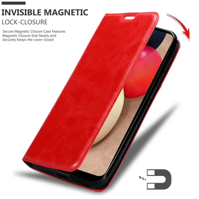 Cadorabo Ohišje, združljivo z Samsung Galaxy A02s v rdeče jabolko - Zaščitni ovitek z magnetnim zapiranjem, stoječo funkcijo in režo za kartice