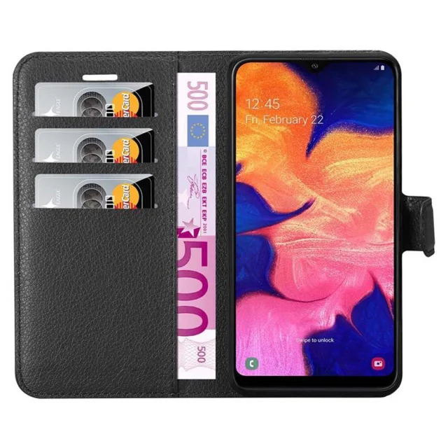 Cadorabo Ohišje, združljivo z Samsung Galaxy A10 / M10 v oksidna črna - Zaščitni ovitek z magnetnim zapiranjem, stoječo funkcijo in režo za kartice