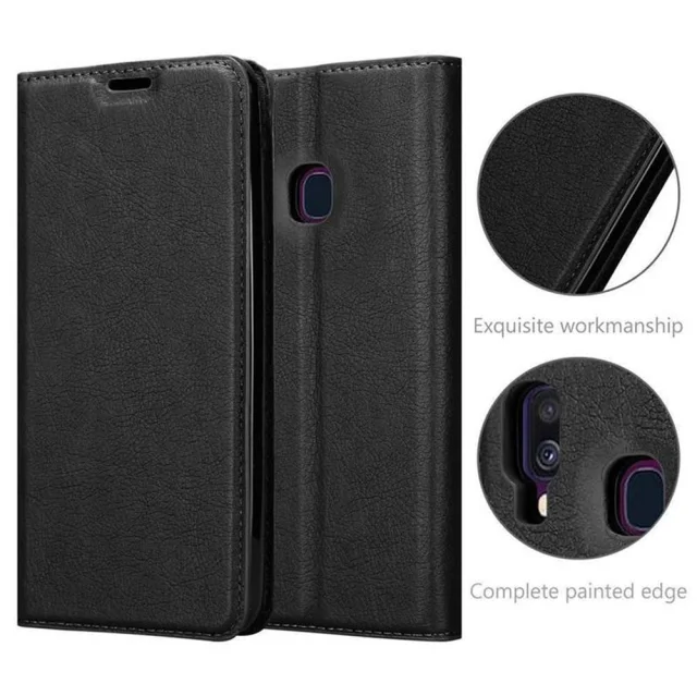 Cadorabo Ohišje, združljivo z Samsung Galaxy A10e / A20e v nočna črna - Zaščitni ovitek z magnetnim zapiranjem, stoječo funkcijo in režo za kartice