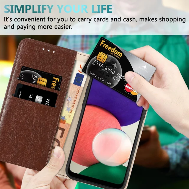 Cadorabo Ohišje, združljivo z Samsung Galaxy A22 5G v nougat rjava - Zaščitni ovitek z magnetnim zapiranjem, funkcijo stojala in režami za kartice