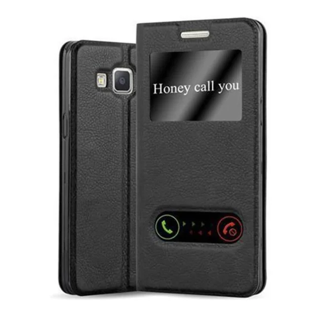 Cadorabo Ohišje, združljivo z Samsung Galaxy A3 2015 v črni komet - Zaščitni ovitek z magnetnim zapiranjem, stoječo funkcijo in 2 okencema za gledanje