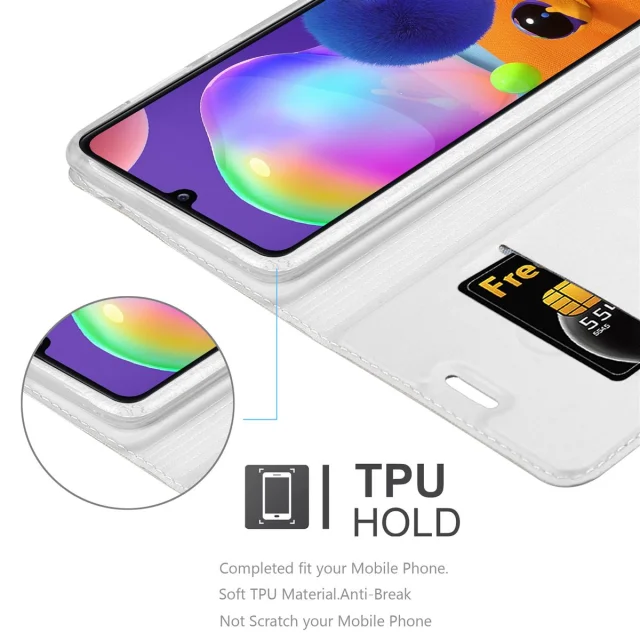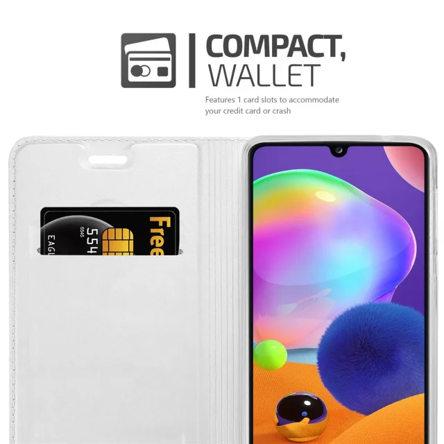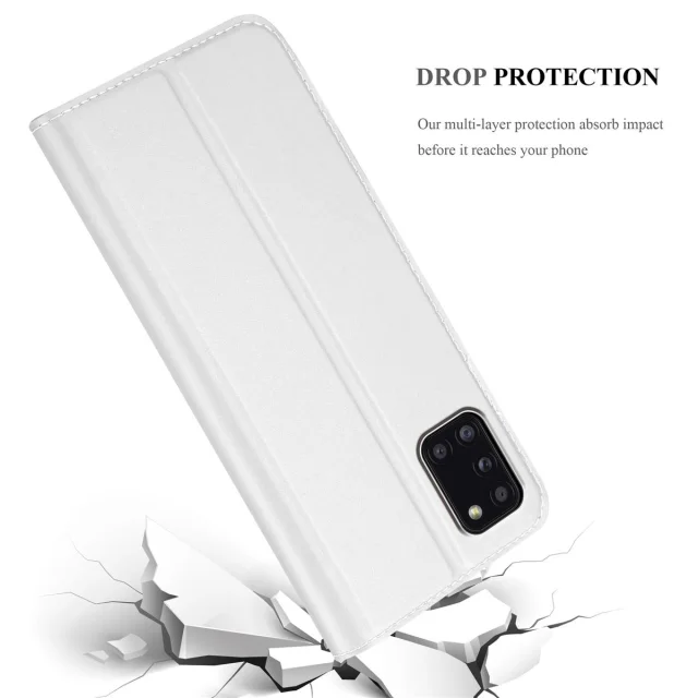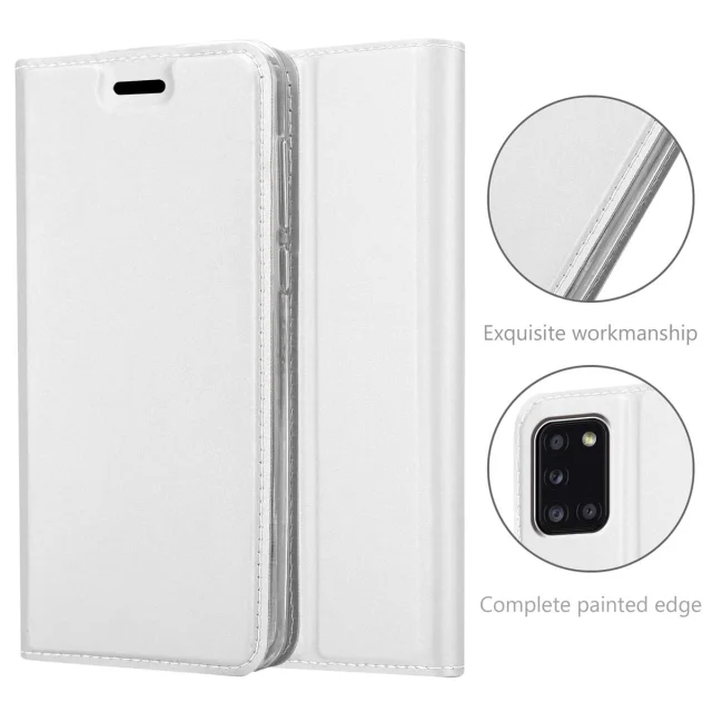 Cadorabo Ohišje, združljivo z Samsung Galaxy A31 v klasično srebrno - Zaščitni ovitek z magnetnim zapiranjem, stoječo funkcijo in režo za kartice