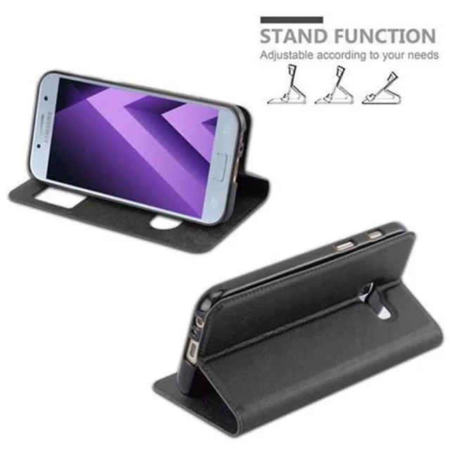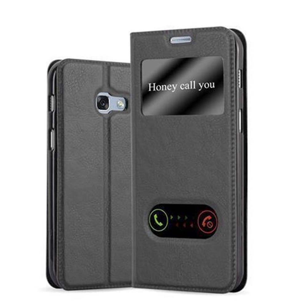 Cadorabo Ohišje, združljivo z Samsung Galaxy A5 2017 v črni komet - Zaščitni ovitek z magnetnim zapiranjem, stoječo funkcijo in 2 okencema za gledanje