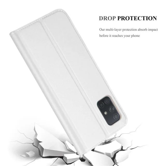 Cadorabo Ohišje, združljivo z Samsung Galaxy A71 4G v klasično srebrno - Zaščitni ovitek z magnetnim zapiranjem, stoječo funkcijo in režo za kartice