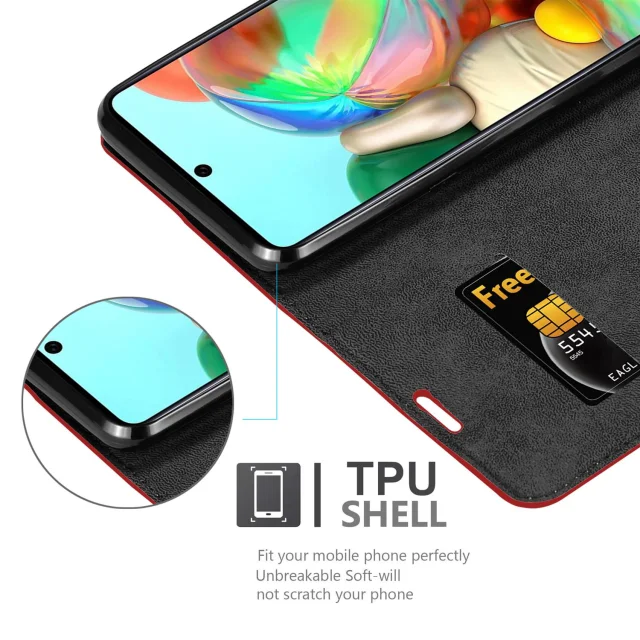Cadorabo Ohišje, združljivo z Samsung Galaxy A72 4G / 5G v rdeče jabolko - Zaščitni ovitek z magnetnim zapiranjem, stoječo funkcijo in režo za kartice
