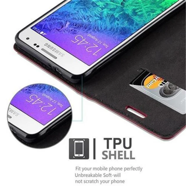 Cadorabo Ohišje, združljivo z Samsung Galaxy ALPHA v rdeče jabolko - Zaščitni ovitek z magnetnim zapiranjem, stoječo funkcijo in režo za kartice