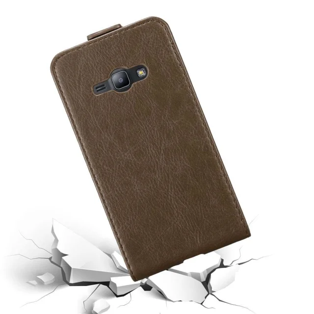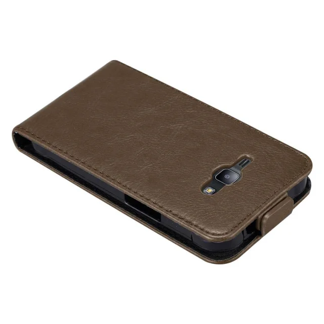 Cadorabo Ohišje, združljivo z Samsung Galaxy J1 2015 v kava rjava - Zaščitni ovitek v obliki flipa z magnetnim zapiranjem