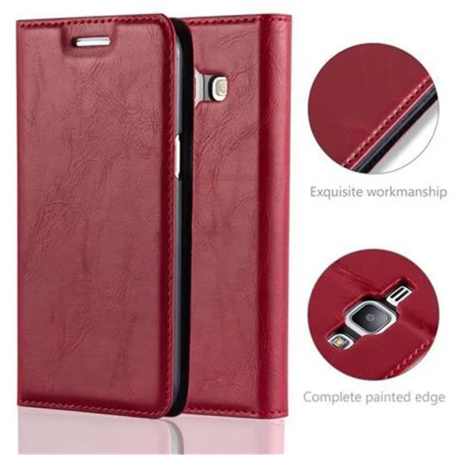 Cadorabo Ohišje, združljivo z Samsung Galaxy J1 2015 v rdeče jabolko - Zaščitni ovitek z magnetnim zapiranjem, stoječo funkcijo in režo za kartice