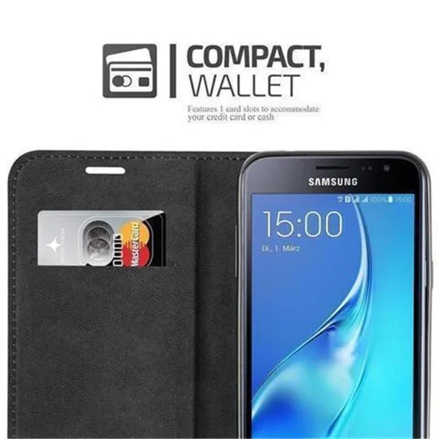 Cadorabo Ohišje, združljivo z Samsung Galaxy J3 2016 v rdeče jabolko - Zaščitni ovitek z magnetnim zapiranjem, stoječo funkcijo in režo za kartice