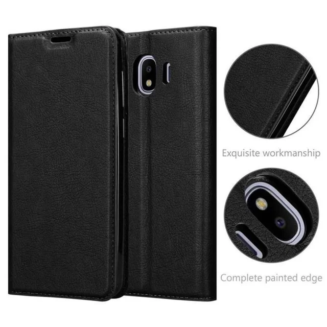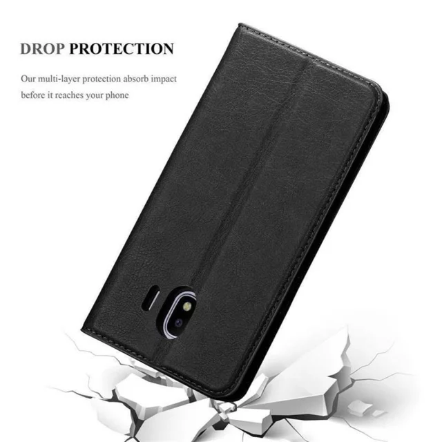 Cadorabo Ohišje, združljivo z Samsung Galaxy J4 2018 v nočna črna - Zaščitni ovitek z magnetnim zapiranjem, stoječo funkcijo in režo za kartice