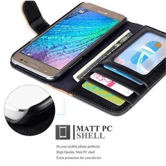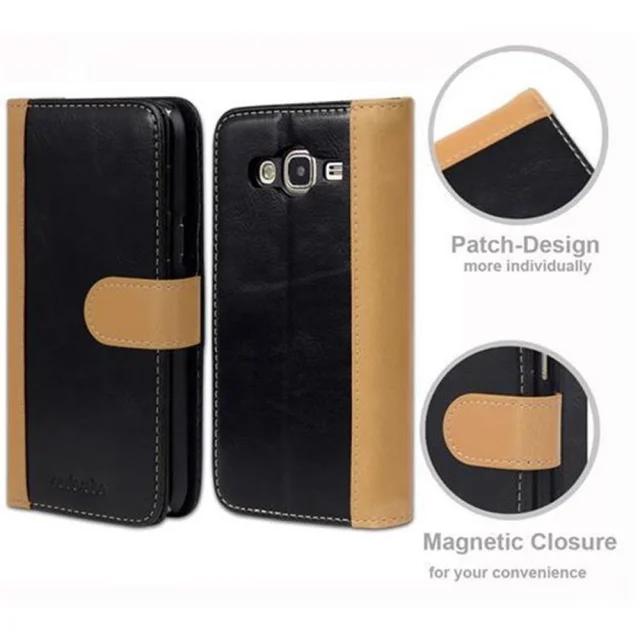 Cadorabo Ohišje, združljivo z Samsung Galaxy J5 2015 v črni kakav - Zaščitni ovitek s funkcijo stojala in režo za kartice v dvobarvnem dizajnu