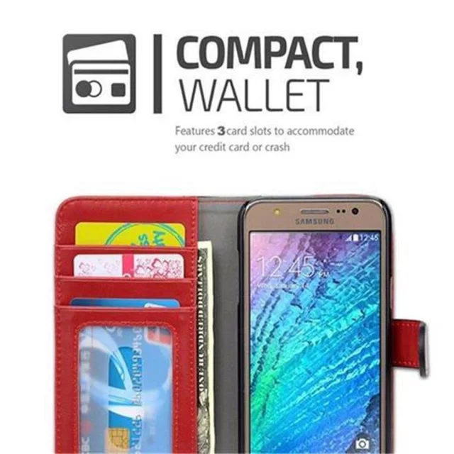 Cadorabo Ohišje, združljivo z Samsung Galaxy J5 2015 v rdeča črna - Zaščitni ovitek s funkcijo stojala in režo za kartice v dvobarvnem dizajnu