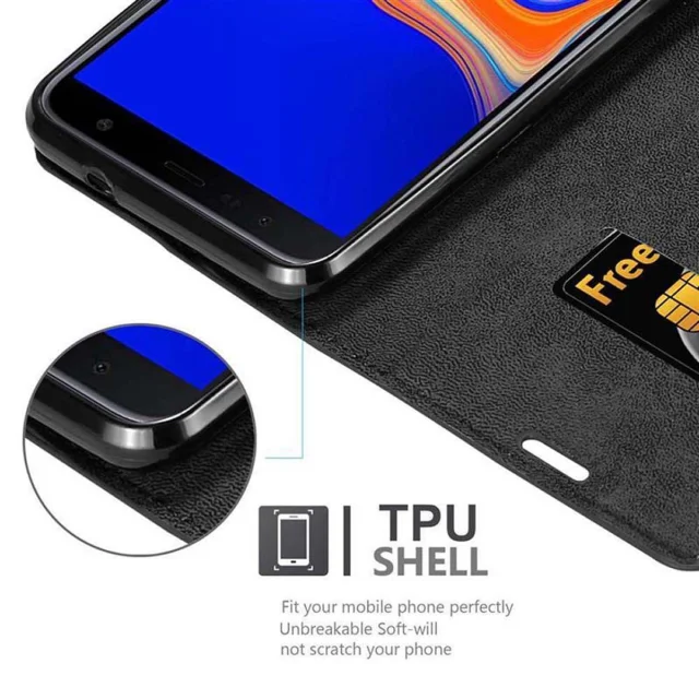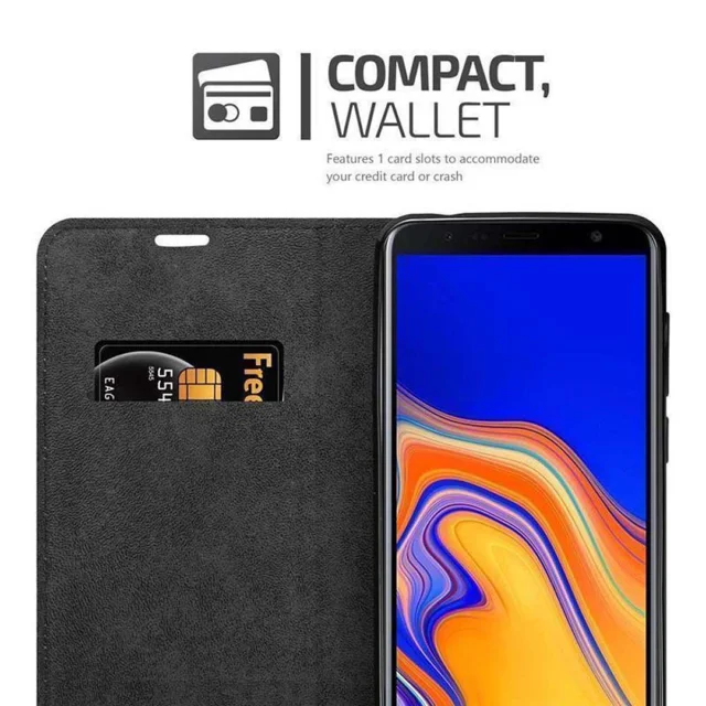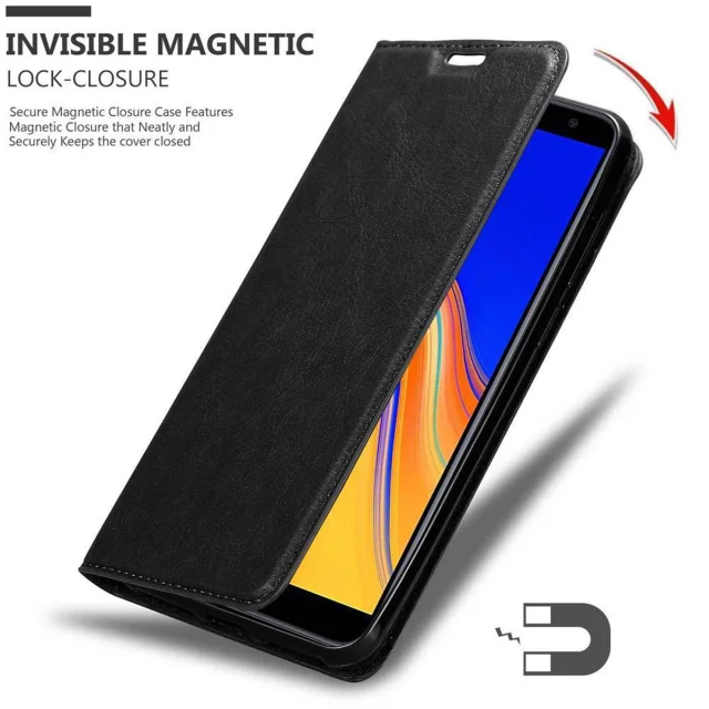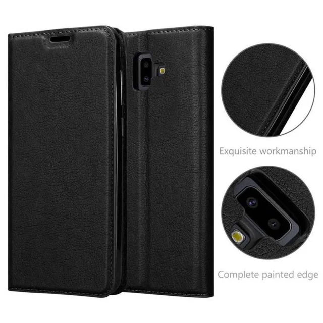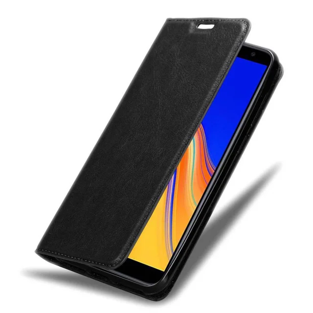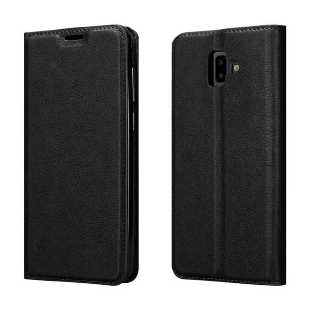 Cadorabo Ohišje, združljivo z Samsung Galaxy J6 PLUS v nočna črna - Zaščitni ovitek z magnetnim zapiranjem, stoječo funkcijo in režo za kartice