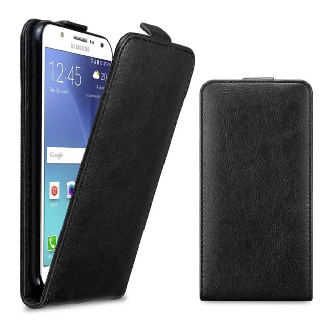Cadorabo Ohišje, združljivo z Samsung Galaxy J7 2015 v nočna črna - Zaščitni ovitek v obliki flipa z magnetnim zapiranjem