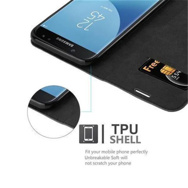 Cadorabo Ohišje, združljivo z Samsung Galaxy J7 2017 v nočna črna - Zaščitni ovitek z magnetnim zapiranjem, stoječo funkcijo in režo za kartice