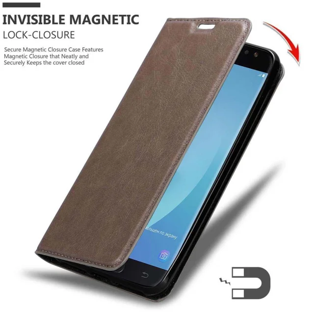 Cadorabo Ohišje, združljivo z Samsung Galaxy J7 2018 v kavovinsko rdeča - Zaščitni ovitek z magnetnim zapiranjem, stoječo funkcijo in režo za kartice