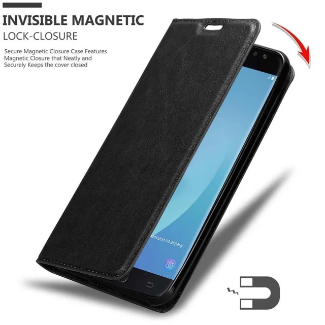 Cadorabo Ohišje, združljivo z Samsung Galaxy J7 2018 v nočna črna - Zaščitni ovitek z magnetnim zapiranjem, stoječo funkcijo in režo za kartice