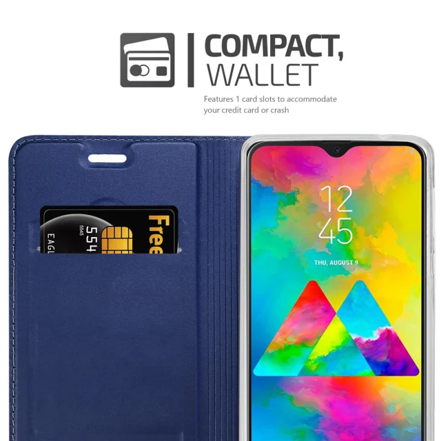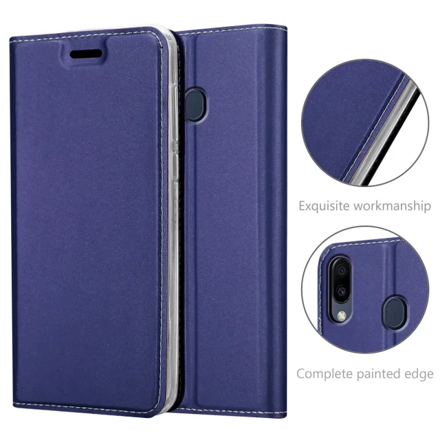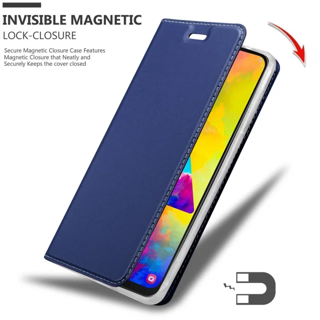 Cadorabo Ohišje, združljivo z Samsung Galaxy M20 v klasična temno modra - Zaščitni ovitek z magnetnim zapiranjem, stoječo funkcijo in režo za kartice