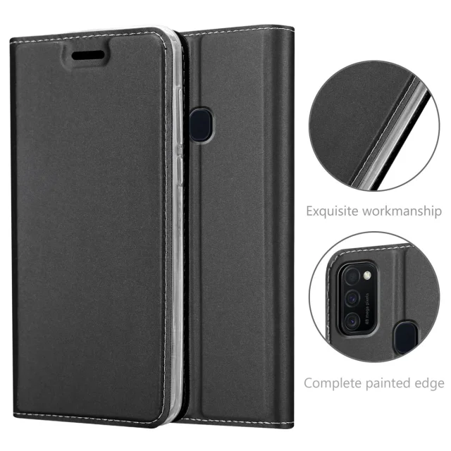 Cadorabo Ohišje, združljivo z Samsung Galaxy M21 / M30s v klasična črna - Zaščitni ovitek z magnetnim zapiranjem, stoječo funkcijo in režo za kartice