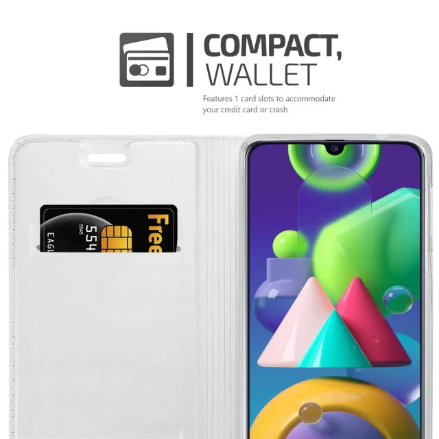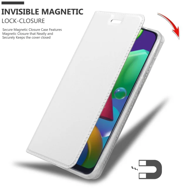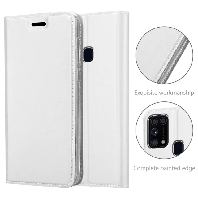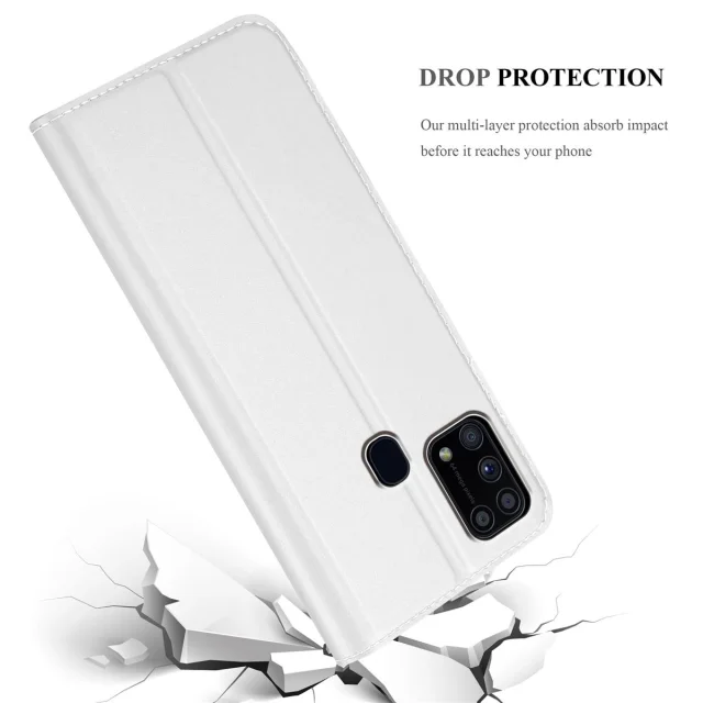 Cadorabo Ohišje, združljivo z Samsung Galaxy M31 v klasično srebrno - Zaščitni ovitek z magnetnim zapiranjem, stoječo funkcijo in režo za kartice