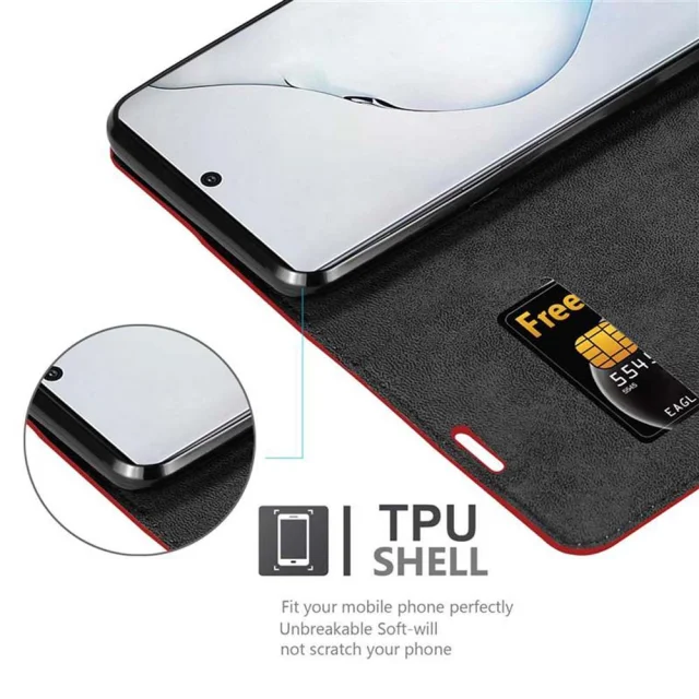 Cadorabo Ohišje, združljivo z Samsung Galaxy NOTE 10 v rdeče jabolko - Zaščitni ovitek z magnetnim zapiranjem, stoječo funkcijo in režo za kartice
