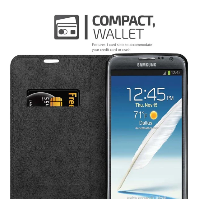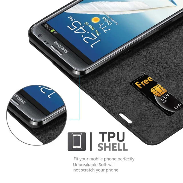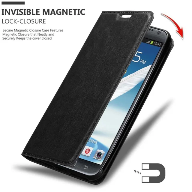 Cadorabo Ohišje, združljivo z Samsung Galaxy NOTE 2 v nočna črna - Zaščitni ovitek z magnetnim zapiranjem, stoječo funkcijo in režo za kartice