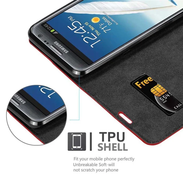 Cadorabo Ohišje, združljivo z Samsung Galaxy NOTE 2 v rdeče jabolko - Zaščitni ovitek z magnetnim zapiranjem, stoječo funkcijo in režo za kartice