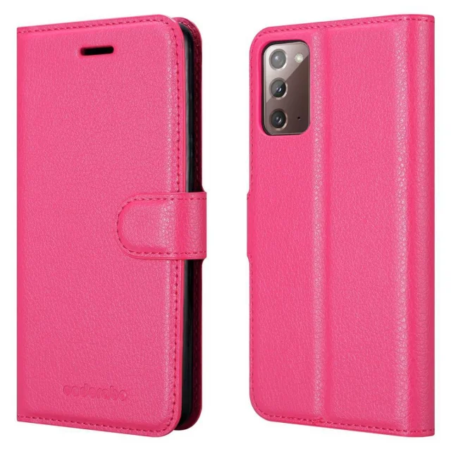 Cadorabo Ohišje, združljivo z Samsung Galaxy NOTE 20 v vroča rožnata - Zaščitni ovitek z magnetnim zapiranjem, stoječo funkcijo in režo za kartice