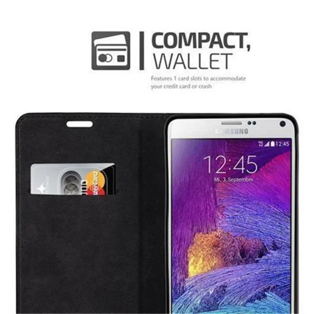 Cadorabo Ohišje, združljivo z Samsung Galaxy NOTE 4 v nočna črna - Zaščitni ovitek z magnetnim zapiranjem, stoječo funkcijo in režo za kartice