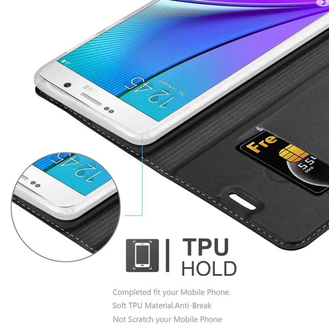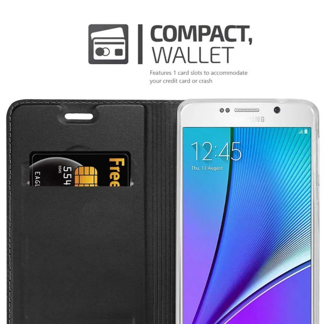 Cadorabo Ohišje, združljivo z Samsung Galaxy NOTE 5 v klasična črna - Zaščitni ovitek z magnetnim zapiranjem, stoječo funkcijo in režo za kartice