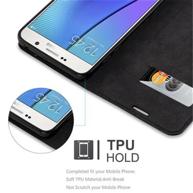 Cadorabo Ohišje, združljivo z Samsung Galaxy NOTE 5 v nočna črna - Zaščitni ovitek z magnetnim zapiranjem, stoječo funkcijo in režo za kartice